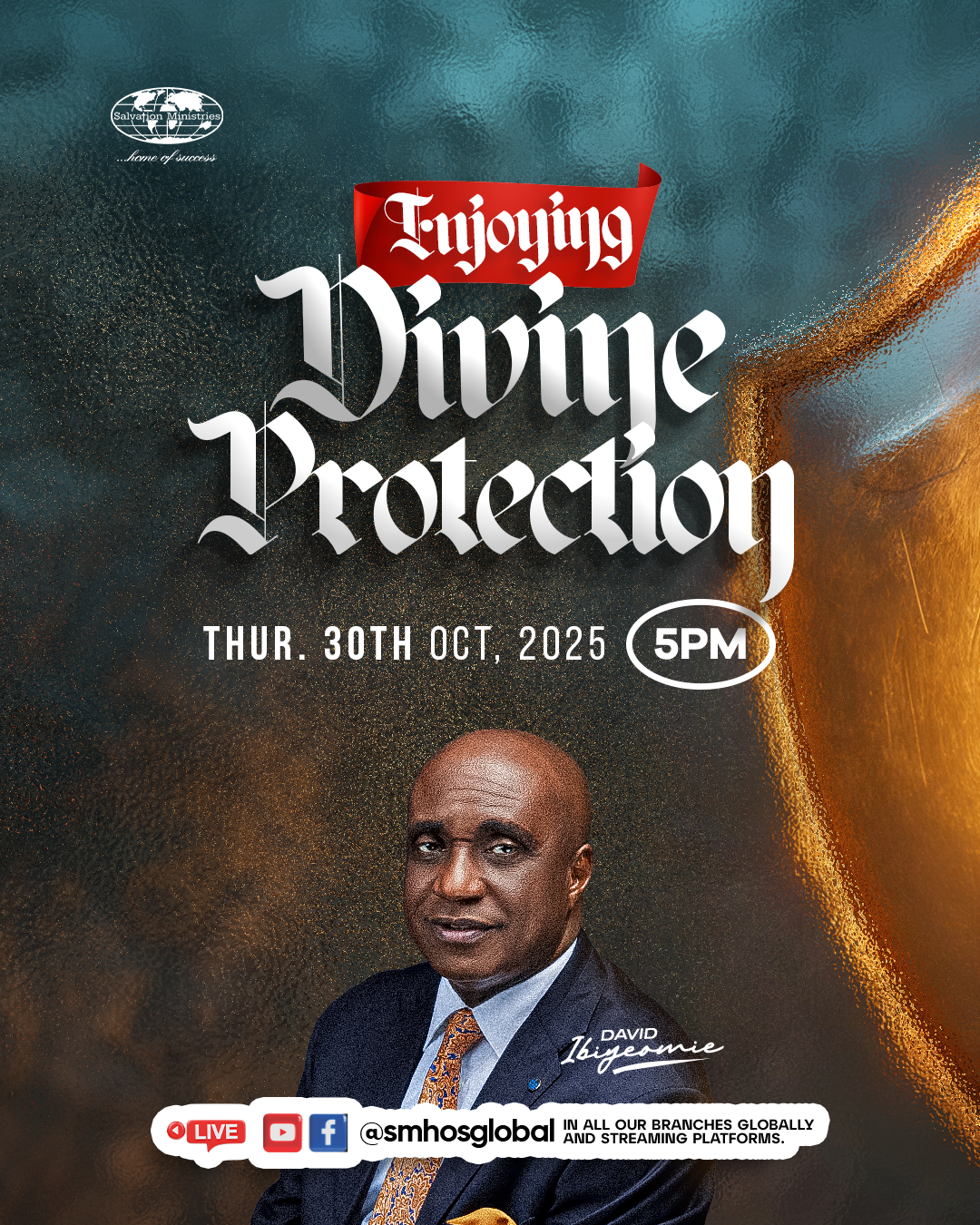 October 30 @ 5:00 PM - 8:00 PM Enjoying Divine Protection Salvation Ministries HQ, And All Her Branches Globally. Plot 17, Birabi Street, Port Harcourt, Rivers, Nigeria