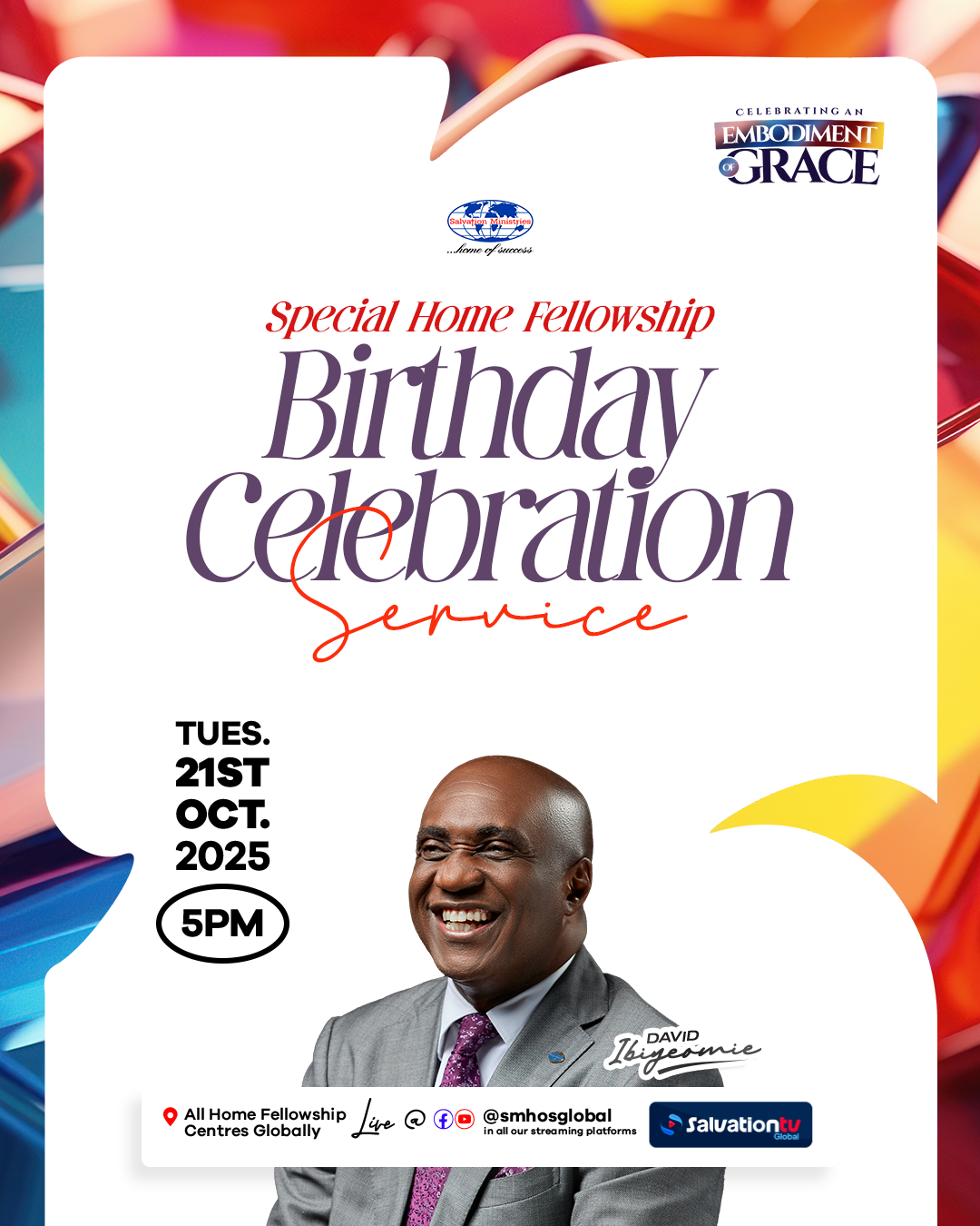 October 26 @ 6:30 AM - 2:00 PM Special Thanksgiving Service Salvation Ministries HQ, And All Her Branches Globally. Plot 17, Birabi Street, Port Harcourt, Rivers, Nigeria